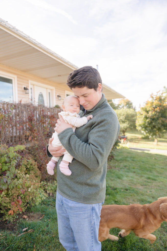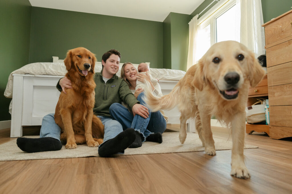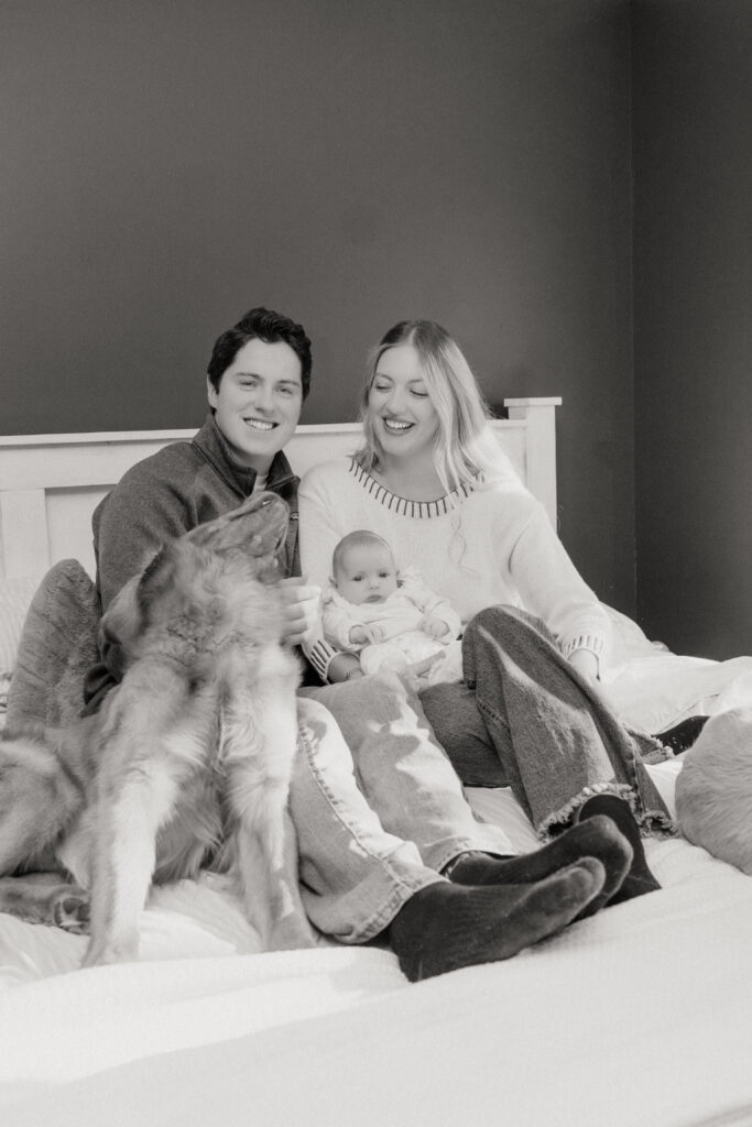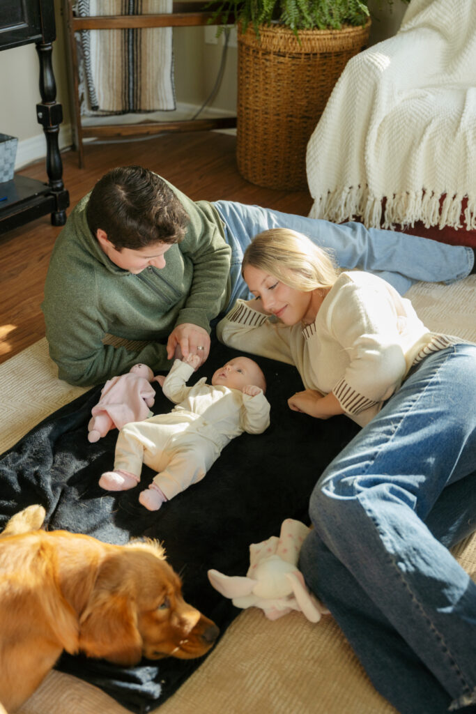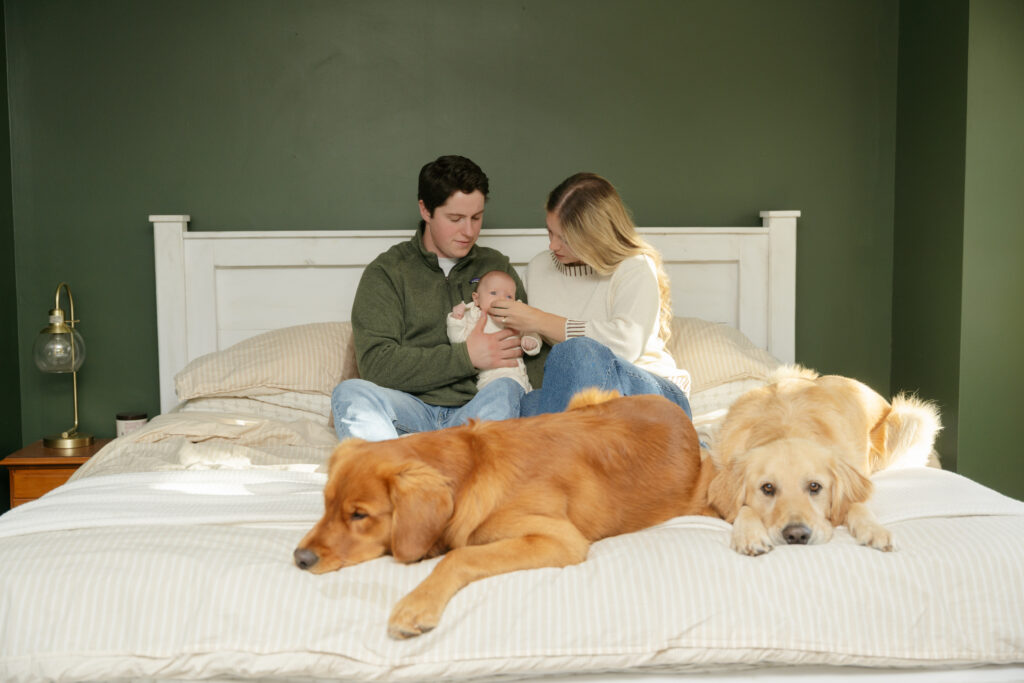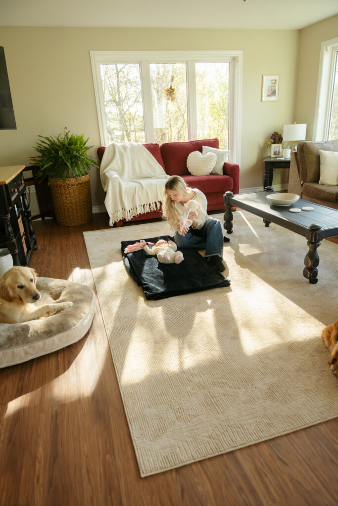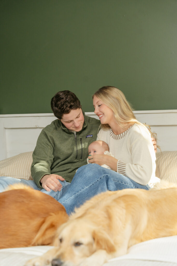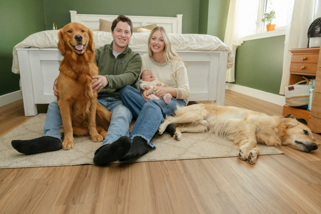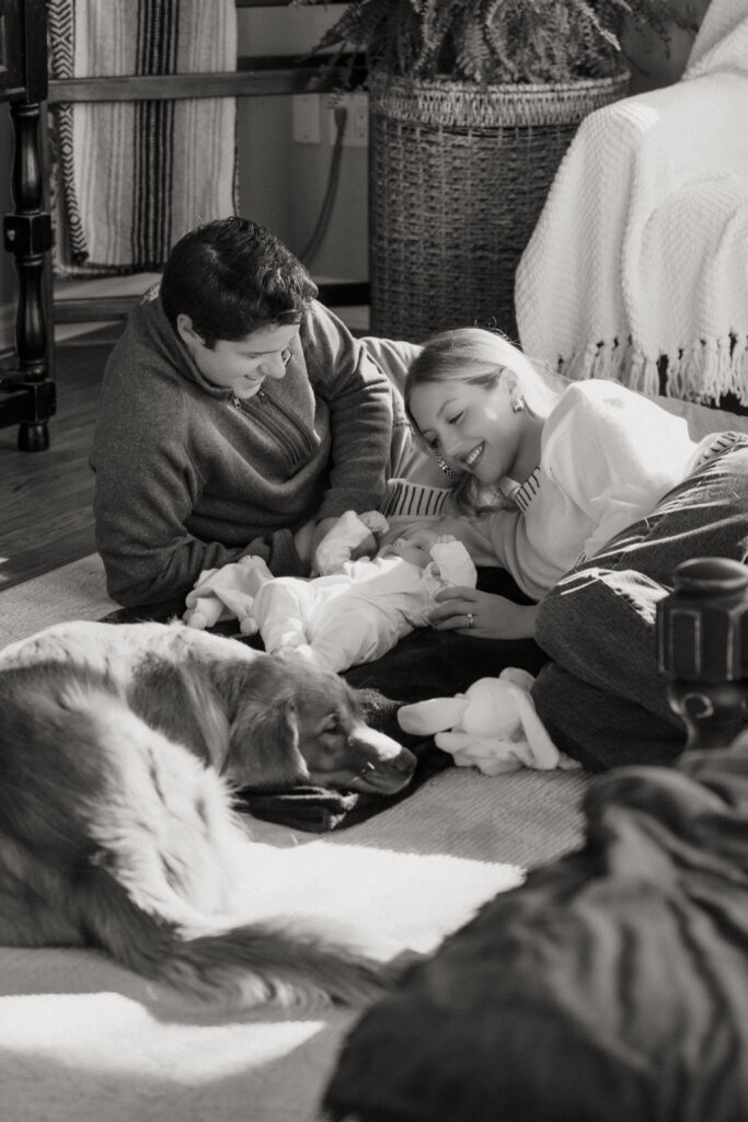 This cozy fall in home family session was everything. Soft, bright light pouring through the windows, crisp fall weather outside, tiny newborn snuggles, and pups never far from the action. Every moment felt relaxed, natural, and full of love. The kind of moments you’ll want to remember exactly as they were forever.