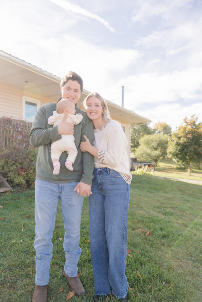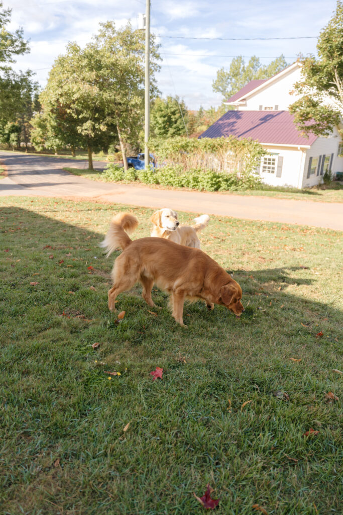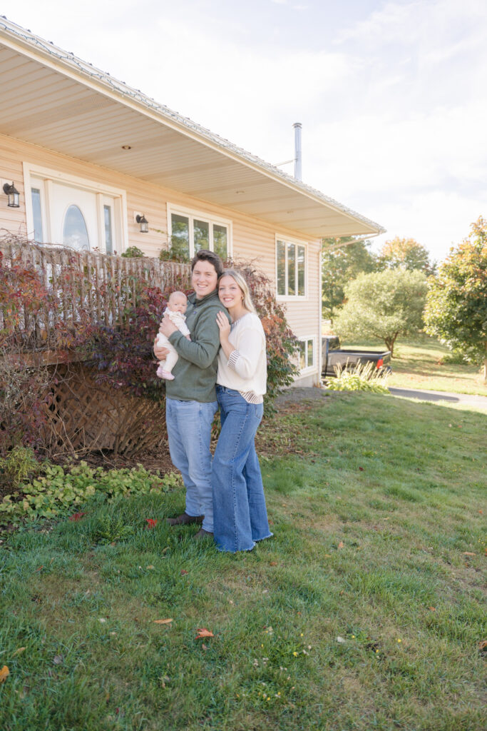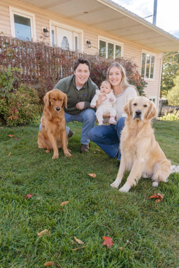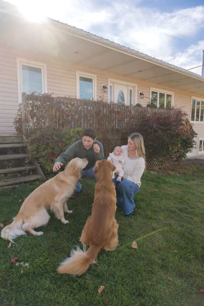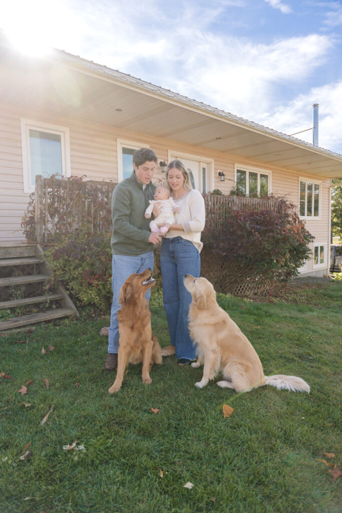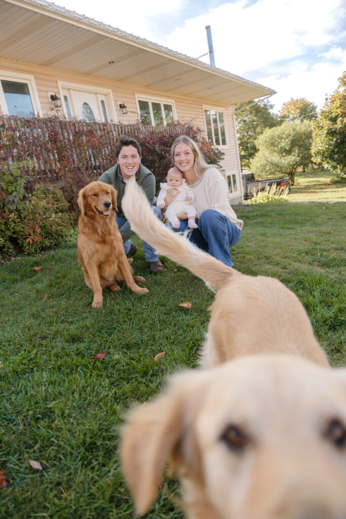 The absolute sweetest, coziest fall in home family session on PEI with Carley, Kristian, baby Maren, and their pups!! 🤍